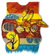 I’m drinking air through a cracked straw17” x 13” x 1”hand-woven fabric, inkjet prints, machine-made and hand-spun yarn, fabric paint, blue fur, glitter, Masonite2025