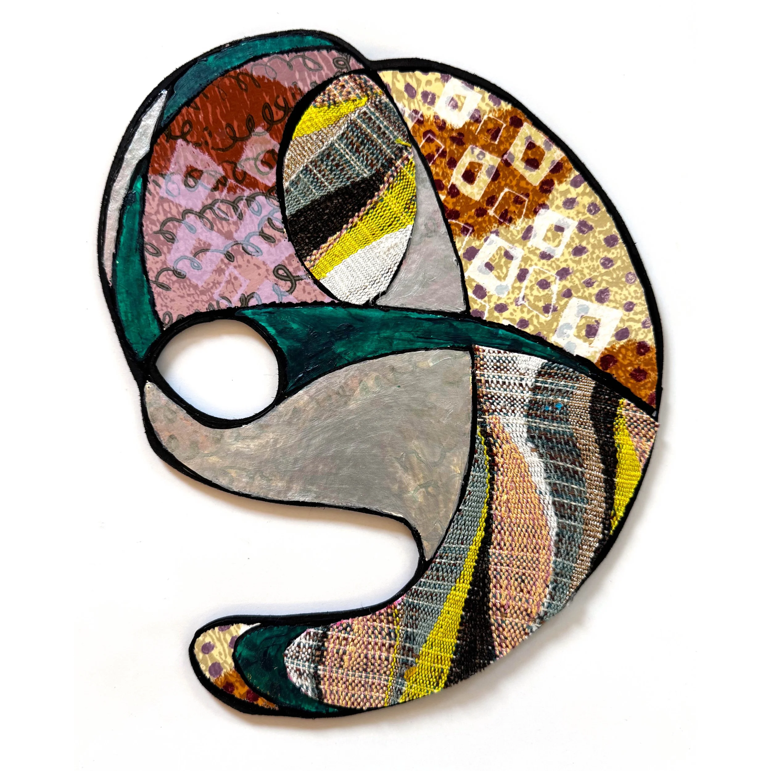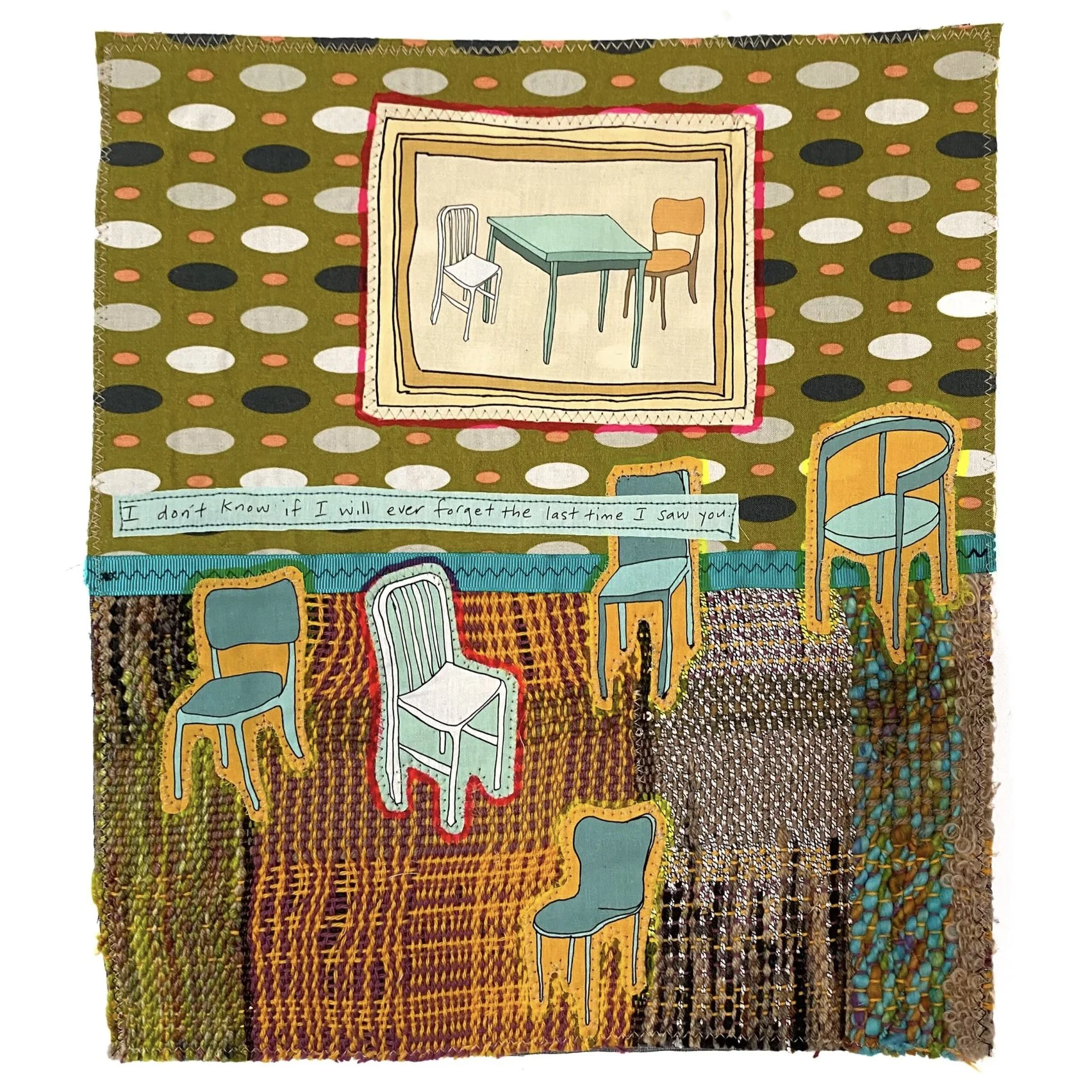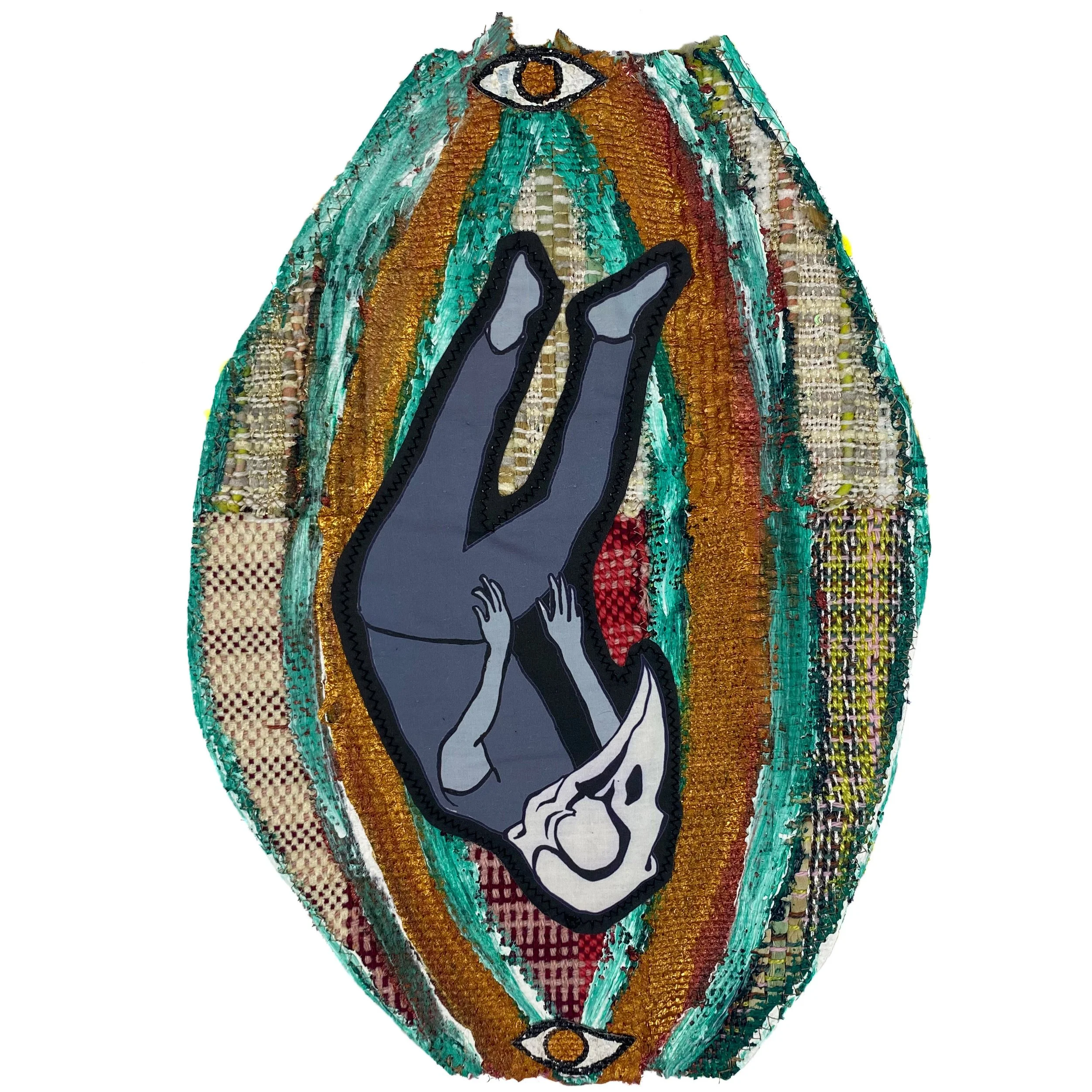 Leaves202570” x 75”Handwoven fabric, hand-spun and dyed yarn, burlap, safety pins